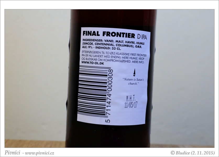 Chutná dvojitá IPA. Velmi dobře se popíjí.Minimální trvanlivost: 11. května 2017