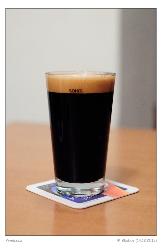 Barva velmi tmavá, téměř černá. Nízká hustá velmi stabilní pěna béžové barvy. Kroužkuje.Vůně (3,5 - velmi dobré):