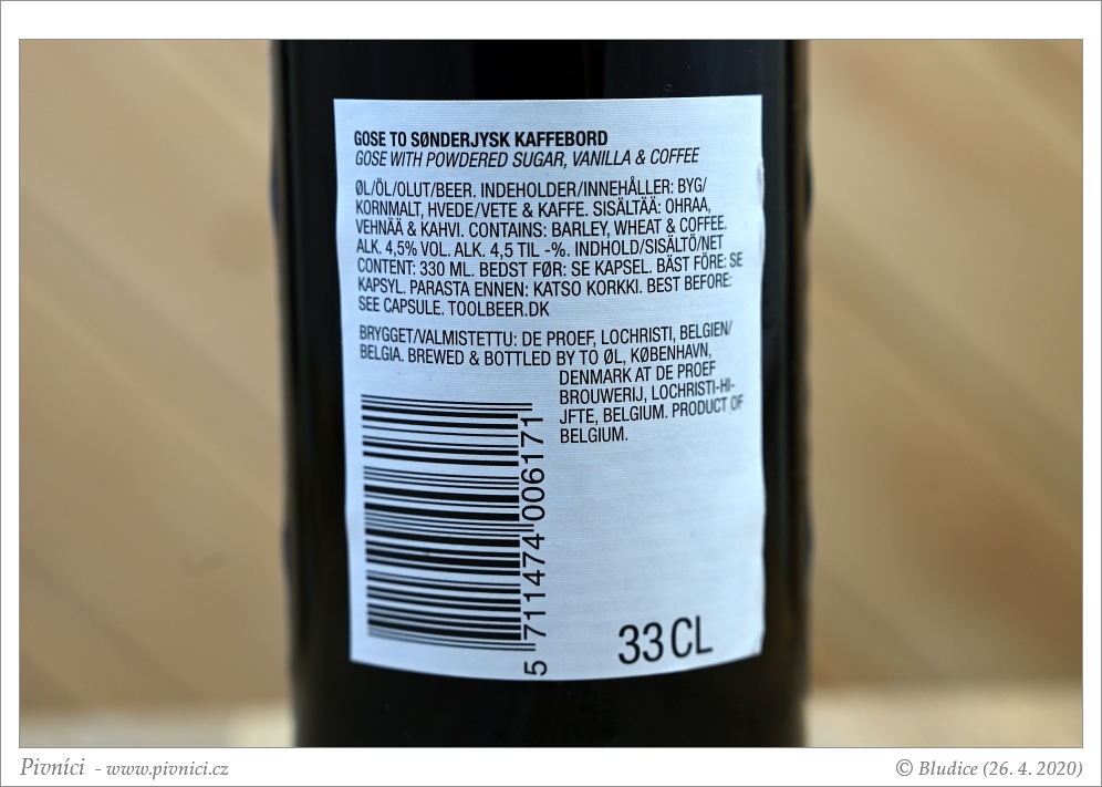 Výborné pivo, kyselost se s ovocitou chutí kávy skvěle doplňuje.Minimální trvanlivost: 9. dubna 2021