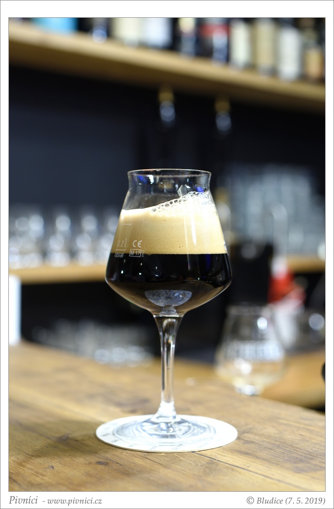 Ebenová až úplně černá barva, zdá se čiré. Pěkná béžová pěna, dobře drží.Vůně (4 - výborné):