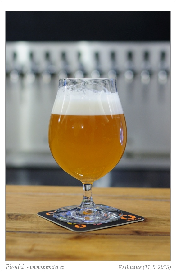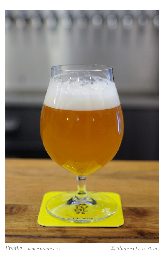 Zlatá barva, středně zakalené, pěkná vyšší bílá pěna, dobře drží, krásně kroužkuje.Vůně (4 - výborné):