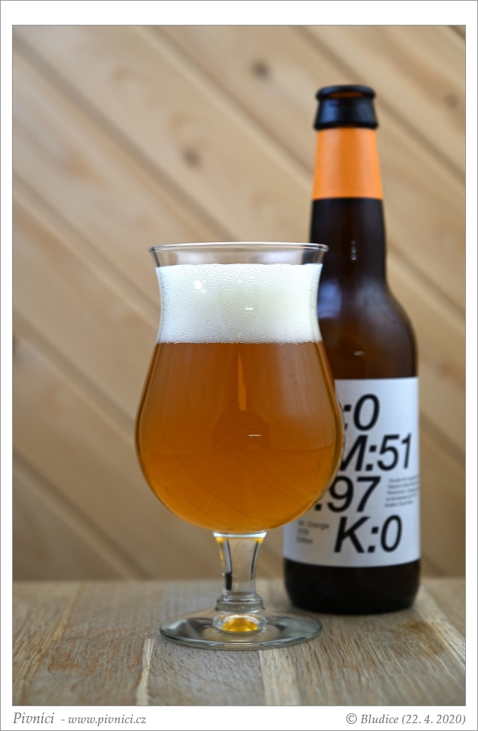 Zlatá barva, lehce zakalené (odpočívalo v klidu lednice měsíc). Pěkná světlá pěna, dobře drží.Vůně (3,5 - velmi dobré):