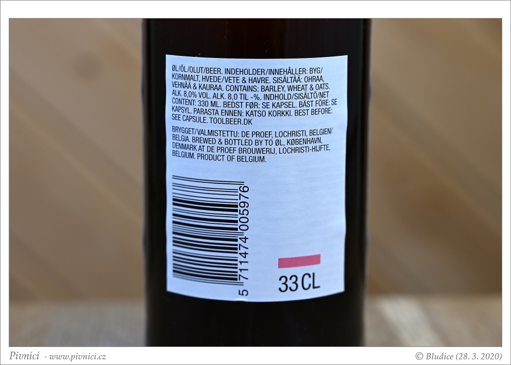 Zlatá barva, lehce zakalené (zákal zřejmě z všeho toho chmelení a ovoce, odpočívalo deset dní v klidu lednice). Pěkná světlá pěna, dobře drží.Vůně (4 - výborné):