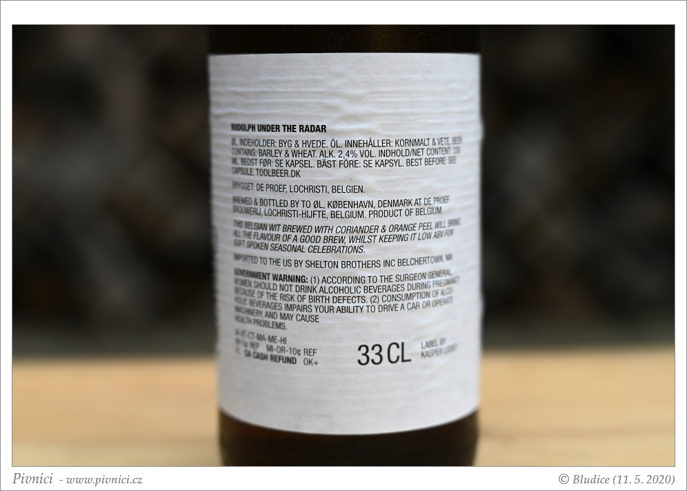 Spíše vyšší jemný říz, spíše nižší plnost. V chuti sladové, se střední až lehce vyšší hořkostí a tóny broskví, citronové a pomerančové kůry, lehce koriandru. Doznívání je s tóny broskví, citronové a lehce pomerančové kůry, nádechem koriandru.Celkový dojem (7,5 - velmi dobré):
