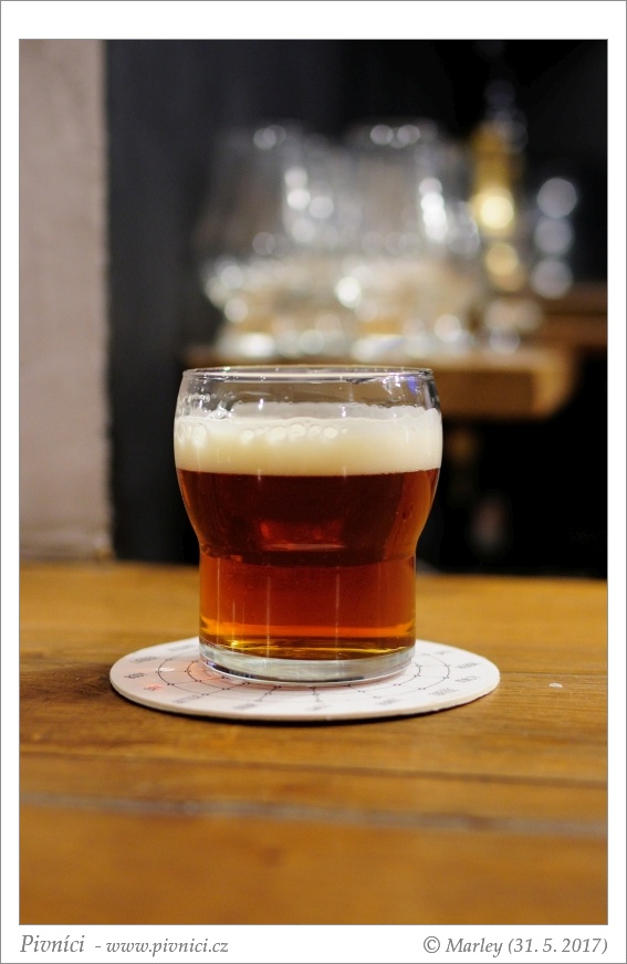 Měděná barva, prakticky čiré, slušná světlá pěna, průměrně drží.Vůně (3,5 - velmi dobré):