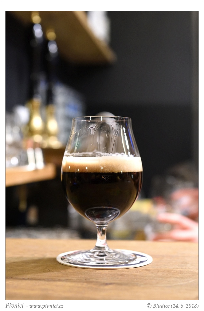 Barva velmi tmavá, téměř černá. Pěkná hustá stabilní pěna béžové barvy.Vůně (3 - dobré):