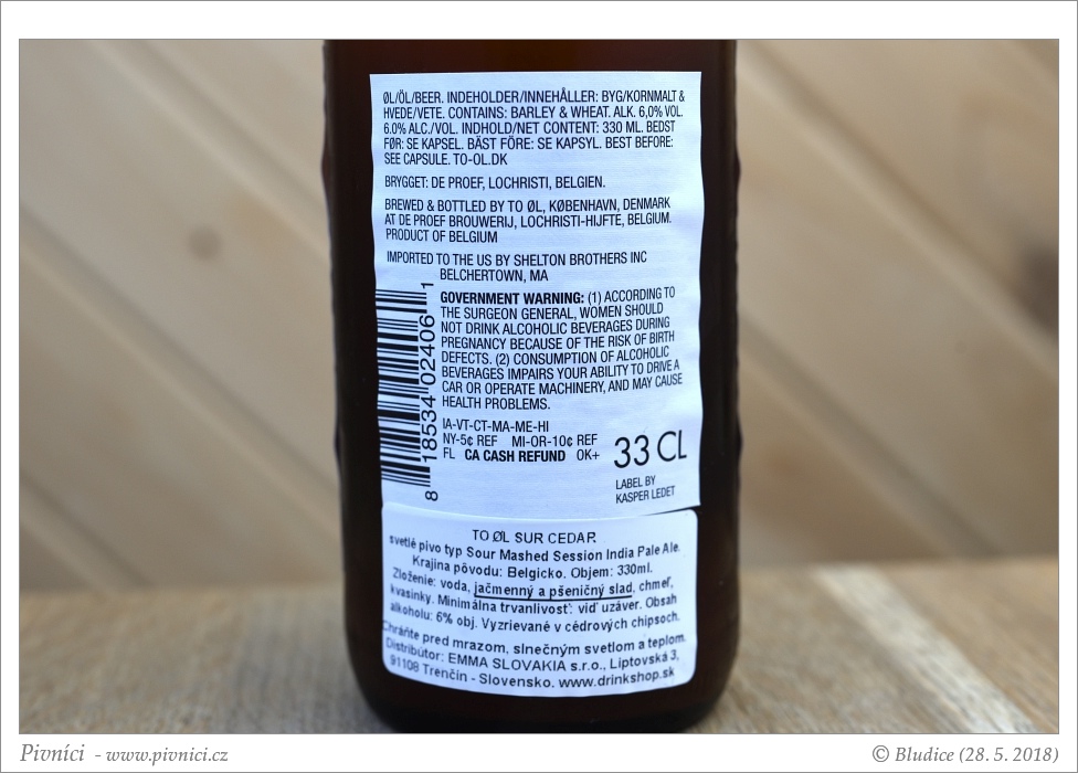 Chutná IPA, cedrové dřevo je v ní cítit opravdu výrazně.Minimální trvanlivost: 18. ledna 2019