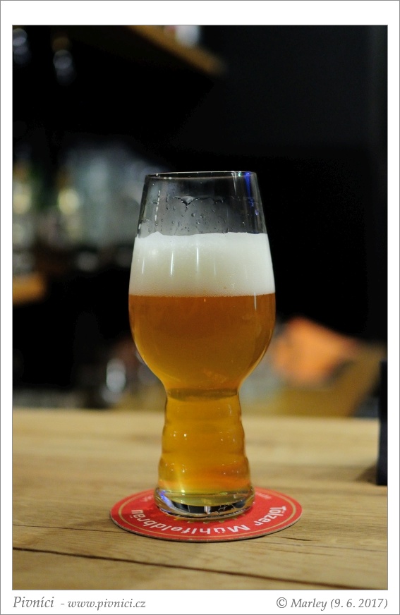 Zlatá barva, lehce zakalené, pěkná světlá pěna, dobře drží.Vůně (4 - výborné):