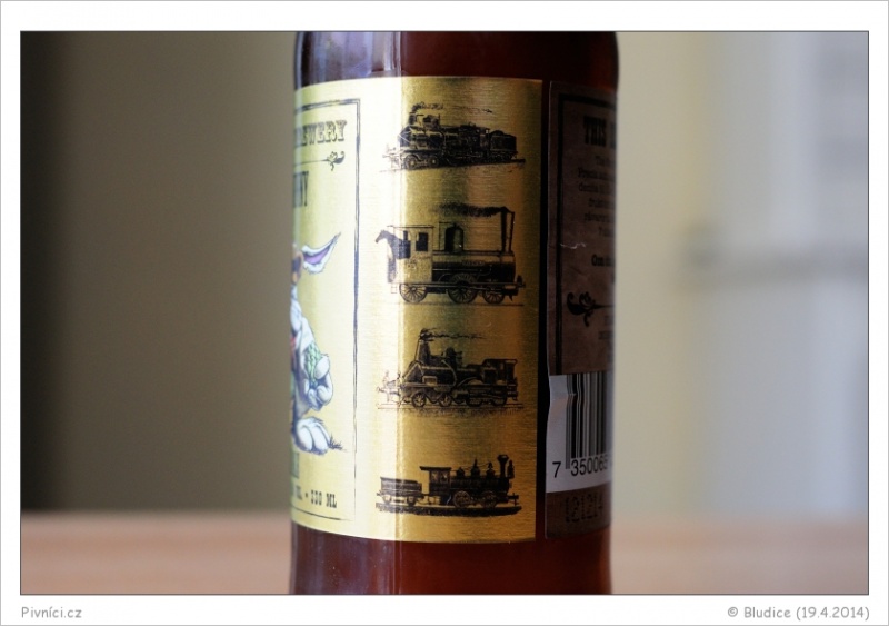 Tmavě zlatá barva, čiré, nižší bílá pěna.Vůně (3 - dobré):