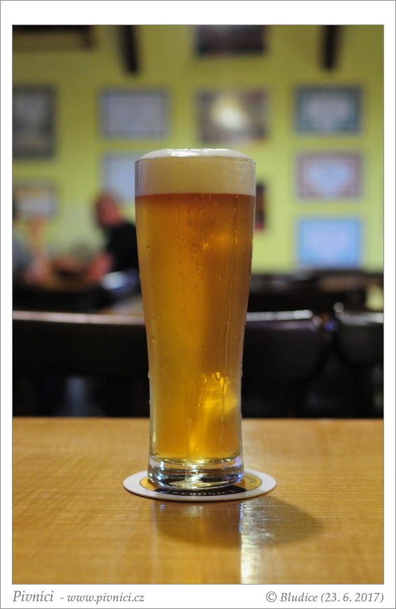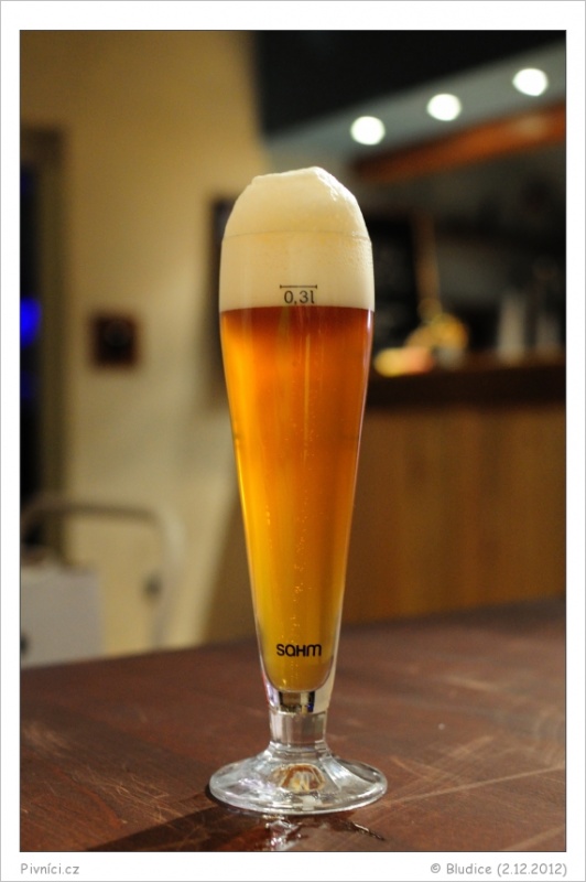 Zlatá barva, lehce zakalené. Pěkná světlá pěna, dobře drží.Vůně (4 - výborné):