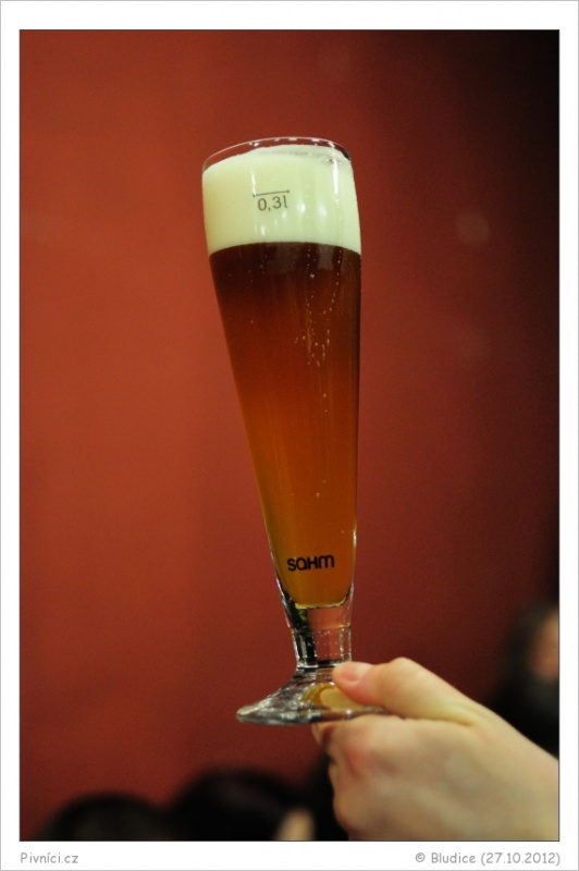 Barva tmavší zlatá, velmi lehce zakalené. Pěkná hustá stabilní pěna. Kroužkuje.Vůně (3 - dobré):
