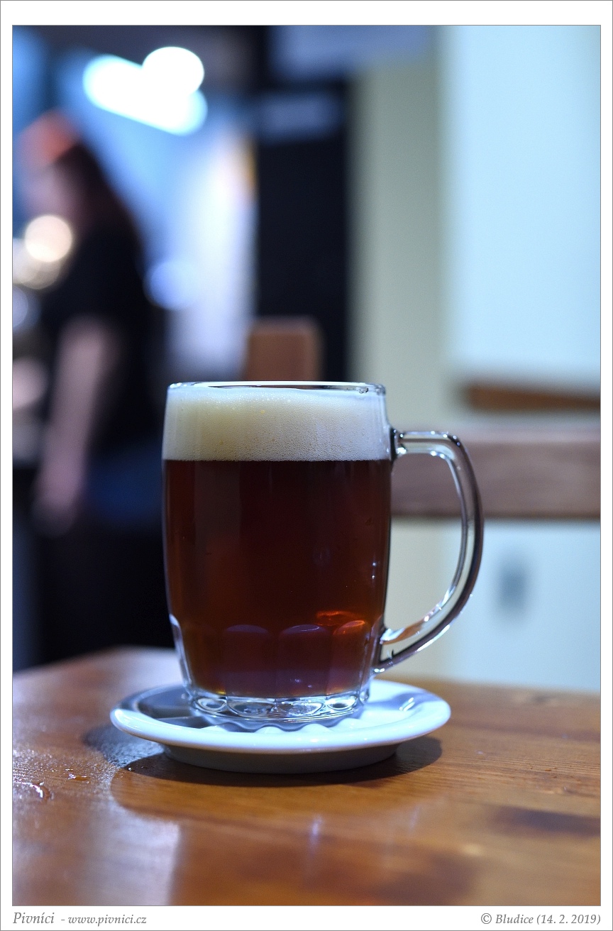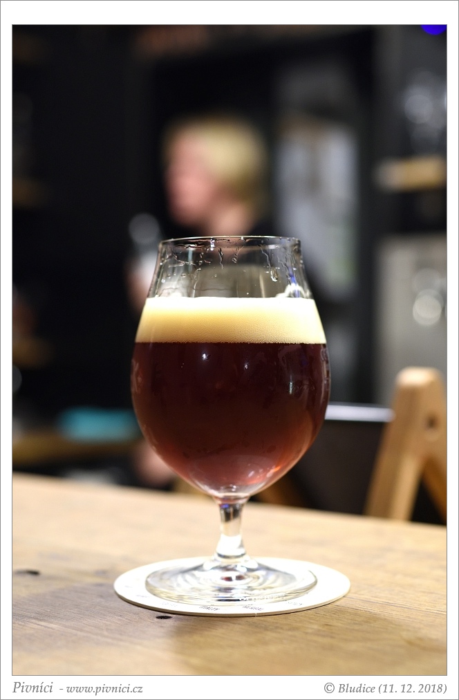 Temně měděná až mahagonová barva, čiré. Pěkná světlá pěna s okrovým nádechem, dobře drží.Vůně (3 - dobré):
