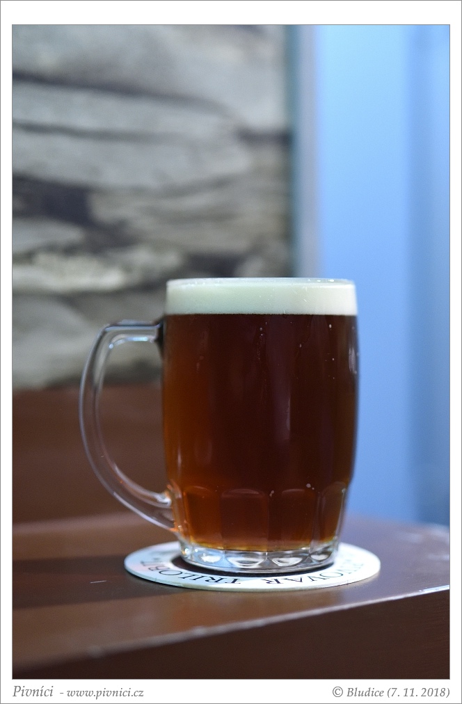 Tmavě měděná barva, lehce zakalené. Slušná světlá pěna s okrovým nádechem, průměrně drží.Vůně (3 - dobré):