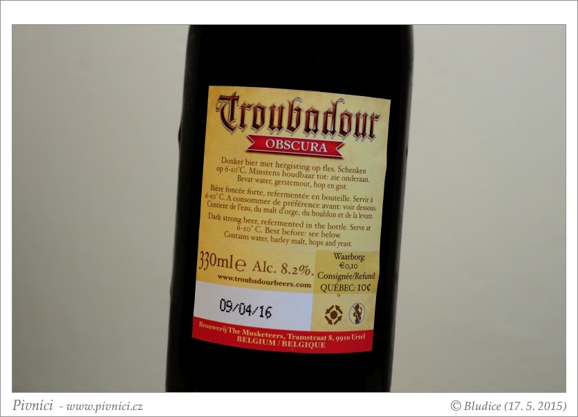 Výborný belgičan, skvěle se popíjí.Minimální trvanlivost: 9. dubna 2016