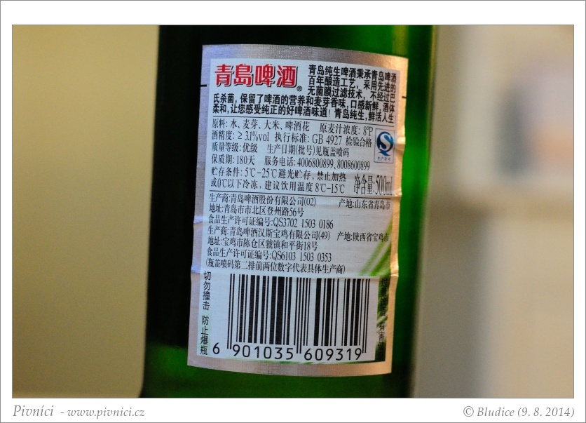 Prázdné pivo prakticky bez chuti. Pít se dá a co jsem slyšela, tak asi bude lepší než voda v Číně.Lahvováno: 1. dubna 2014