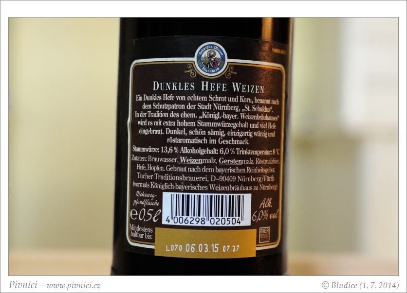 Dobře pitelná tmavá pšenice.Cena 1,05 € za 0,5 l v Getränke Hoffmann Berlin