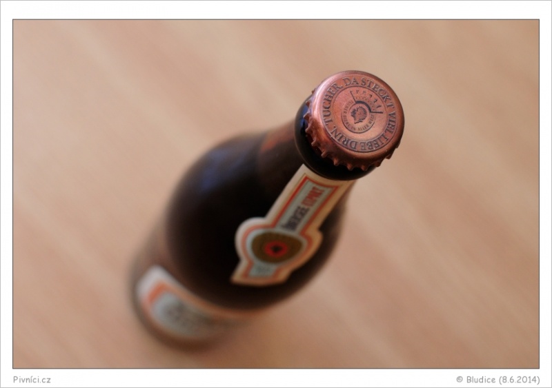 Zlatá barva, čiré, slušná bílá pěna, průměrně drží.Vůně (3 - dobré):