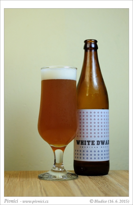 Zlatá barva, více zakalené (týden v lednici, ani jsme nedolévali kvasnice ze dna, to by se asi pít nedalo), slušná světlá pěna, celkem drží.Vůně (2,5 - lehce nadprůměr):