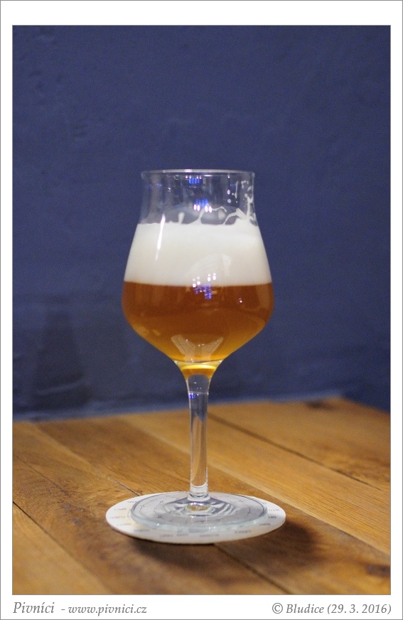 Zlatá barva, středně zkalené, pěkná světlá pěna dobře drží.Vůně (3,5 - velmi dobré):