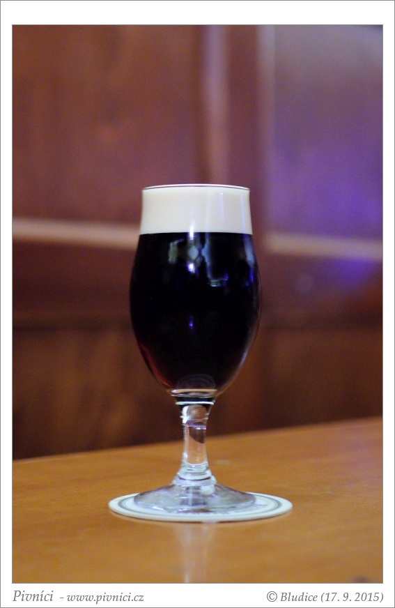 Barva tmavě mahagonová. Pěkná hustá stabilní pěna.Vůně (1,5 - nedobré):