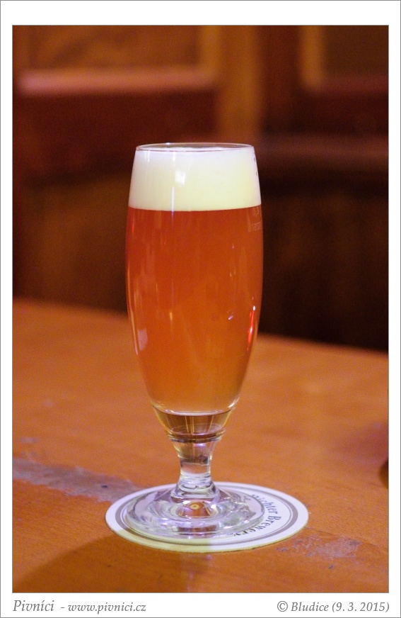 Barva oranžovohnědá, zakalené. Pěkná hustá stabilní pěna.Vůně (1,5 - nedobré):