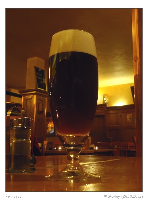 Tmavě hnědá barva, zakalené, slušná světlá pěna, lehce kroužkuje.Vůně (1,5 - nedobré):