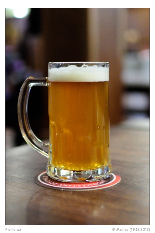 Tmavší zlatá barva, lehce zakalené, slušná bílá pěna, hezky kroužkuje.Vůně (3,5 - velmi dobré):