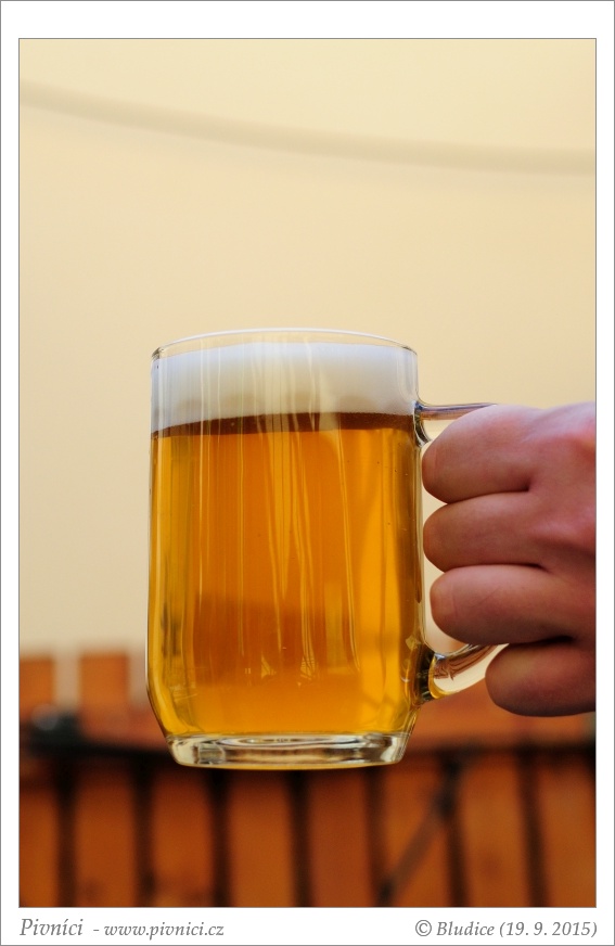 Zlatá barva, velmi lehce zakalené, pěkná světlá pěna, dobře drží.Vůně (2 - průměr):