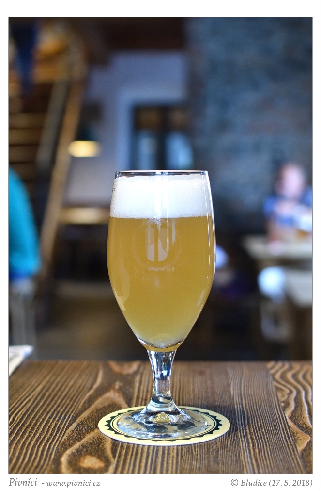 Barva světle zlatá, lehce zakalené. Pěkná hustá stabilní pěna.Vůně (2,5 - lehce nadprůměr):