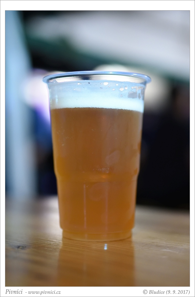 Zlatá barva, prakticky čiré. Pěkná světlá pěna, dobře drží, hezky kroužkuje.Vůně (3,5 - velmi dobré):