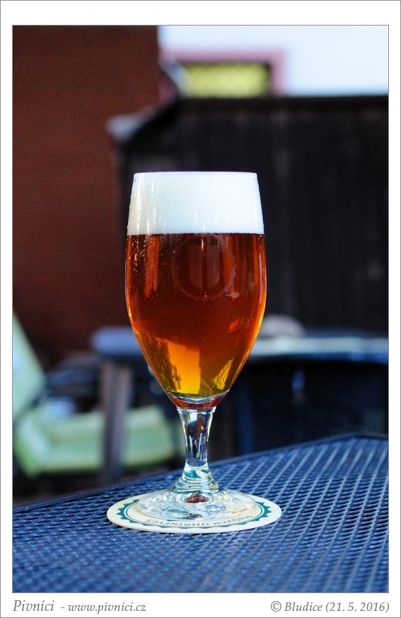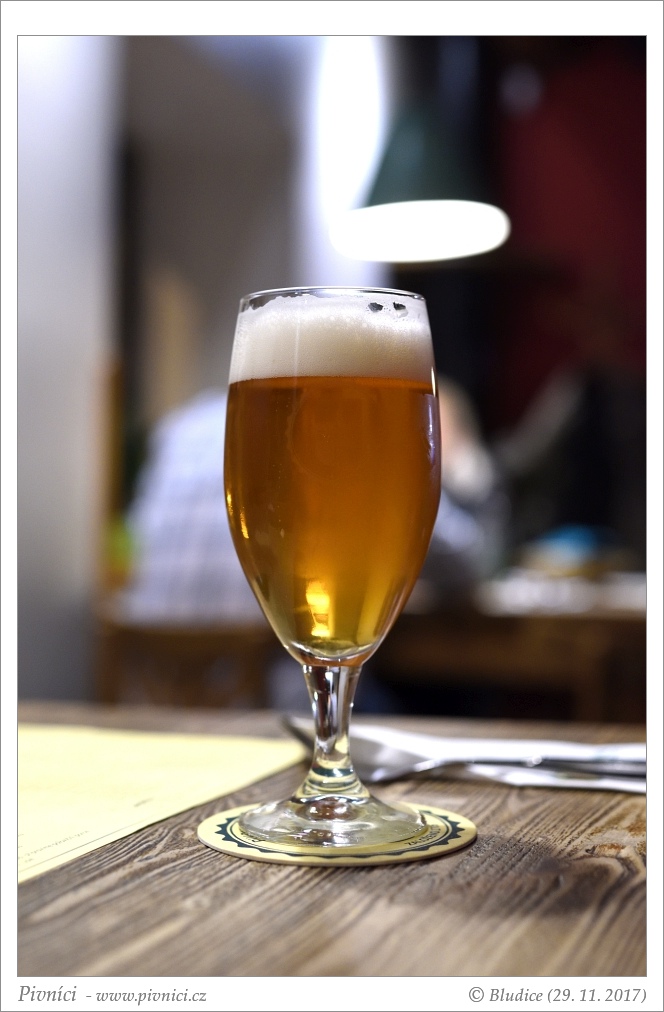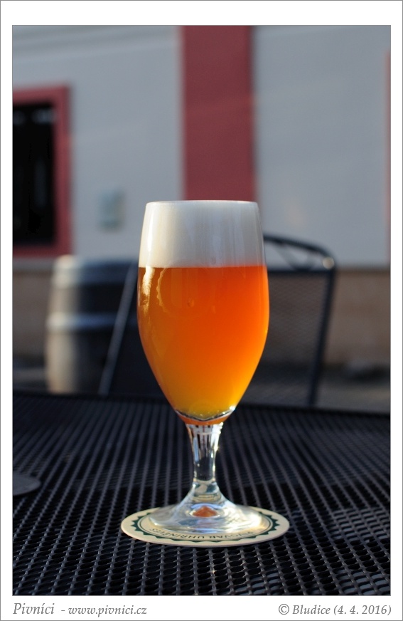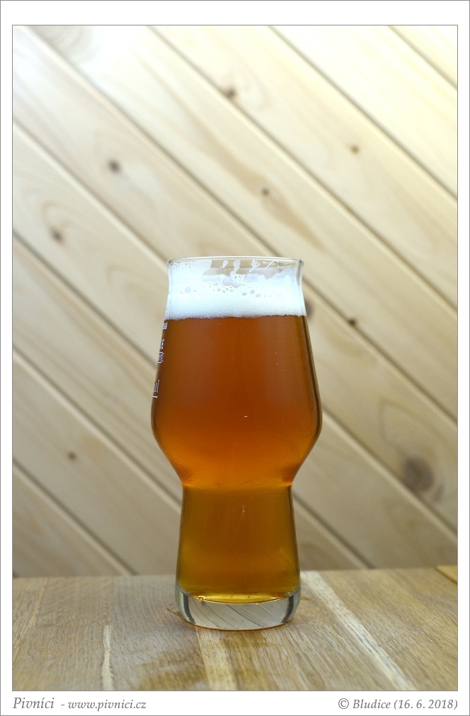 Tmavší zlatá barva, čiré. Pěkná světlá pěna, dobře drží.Vůně (2,5 - lehce nadprůměr):