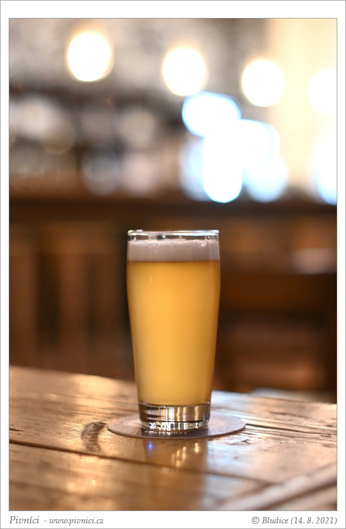 Světle zlatá barva, středně až více zakalené. Pěkná světlá pěna, dobře drží.Vůně (3,5 - velmi dobré):