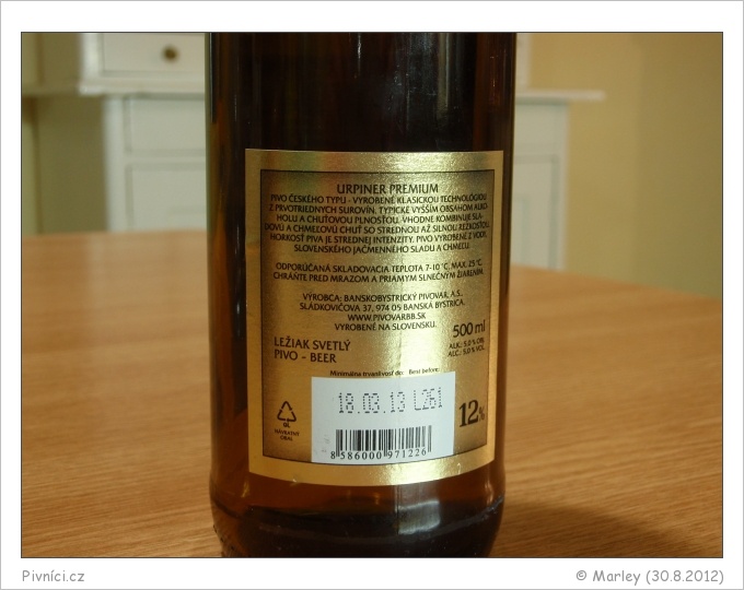 Zlatá barva, čiré, slušná bílá pěna, celkem drží.Vůně (2 - průměr):