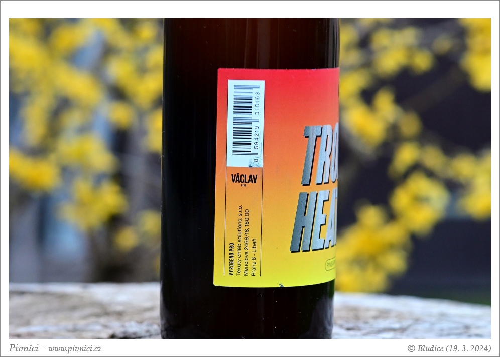 Zlatá barva, lehce až středně zakalené. Slušná světlá pěna, celkem drží.Vůně (3 - dobré):