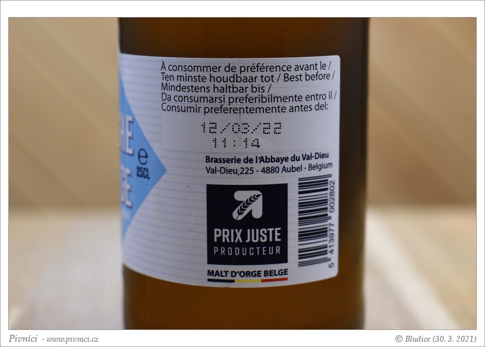 Dobře pitelný witbier.Minimální trvanlivost: 12. března 2022