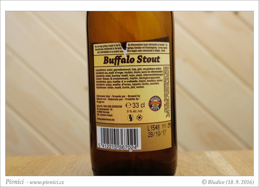 Výborný belgický stout. Skvěle se pije.Minimální trvanlivost: 28. října 2017