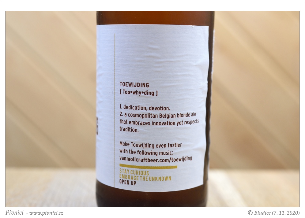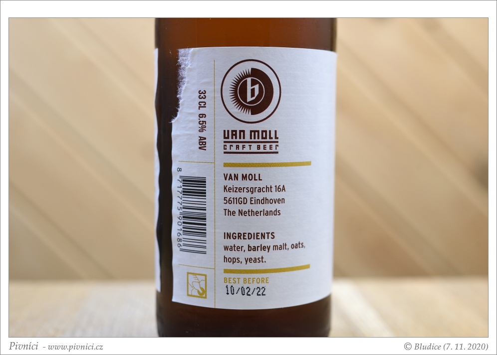 Tmavší zlatá barva, prakticky čiré (v klidu lednice odpočívalo měsíc – chvíli trvalo, než se vyčeřilo). Pěkná světlá pěna, dobře drží.Vůně (3,5 - velmi dobré):