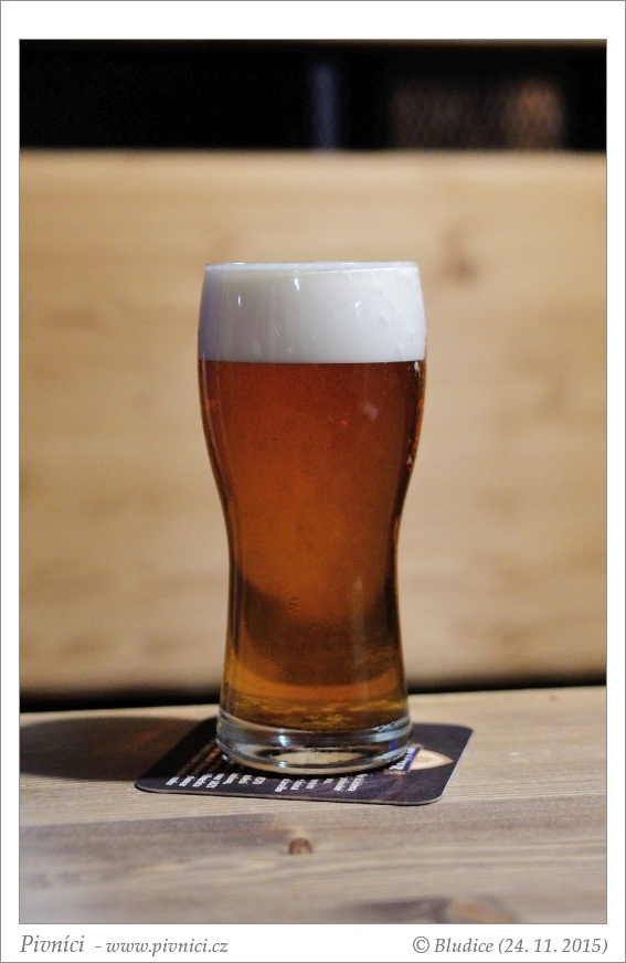 Zlatá barva, téměř čiré, pěkná krémová pěna, dobře drží, krásně kroužkuje (i díky tomu, že při čepování pěnilo).Vůně (2 - průměr):