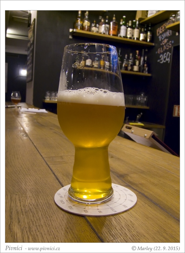 Zlatá barva, čiré, pěkná světlá pěna, slušně drží.Vůně (3,5 - velmi dobré):