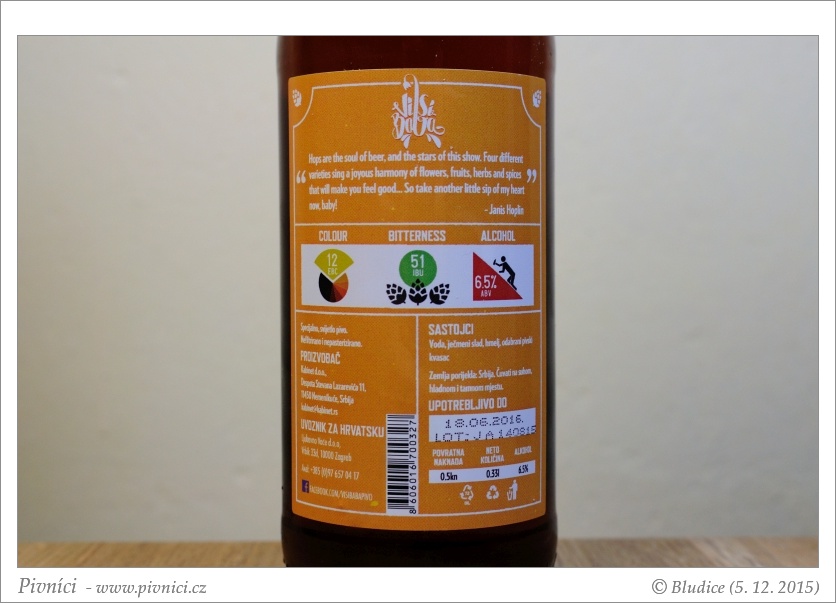 Chutná IPA. Zajímavě chmelená.Minimální trvanlivost: 18. června 2016