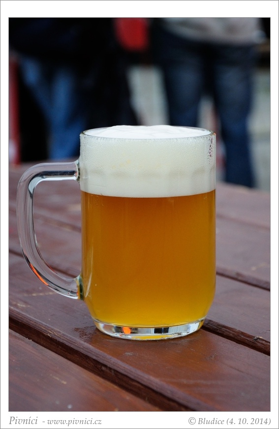 Zlatá barva, lehce zakalené. Slušná světlá pěna, celkem drží.Vůně (2 - průměr):