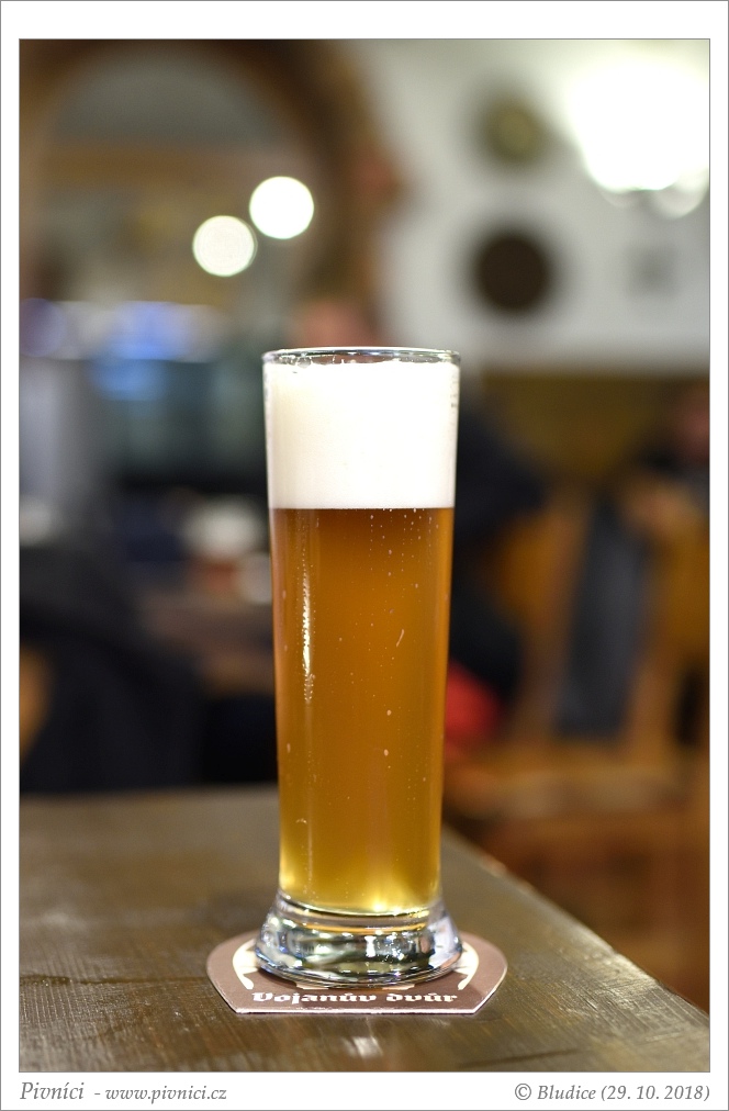 Barva tmavě zlatá, zakalené. Pěkná hustá stabilní pěna.Vůně (2,5 - lehce nadprůměr):