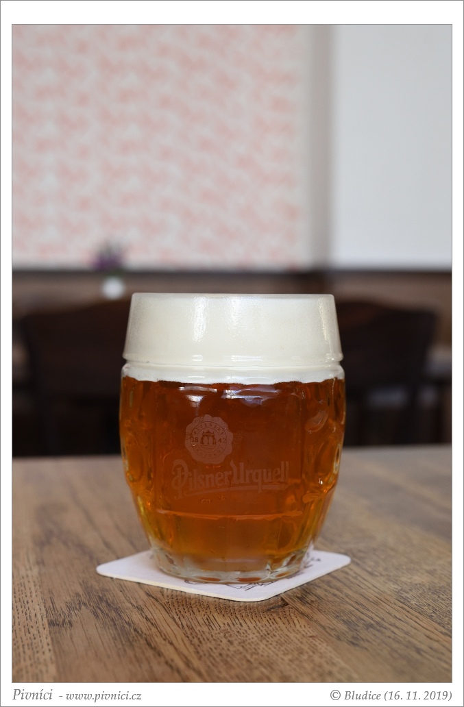 Zlatá barva, téměř čiré. Pěkná světlá pěna, velmi dobře drží.Vůně (3,5 - velmi dobré):
