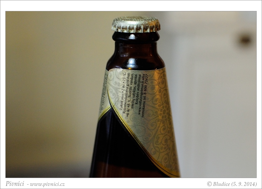 Světle zlatá barva, čiré, slušná bílá pěna, celkem drží.Vůně (2,5 - lehce nadprůměr):