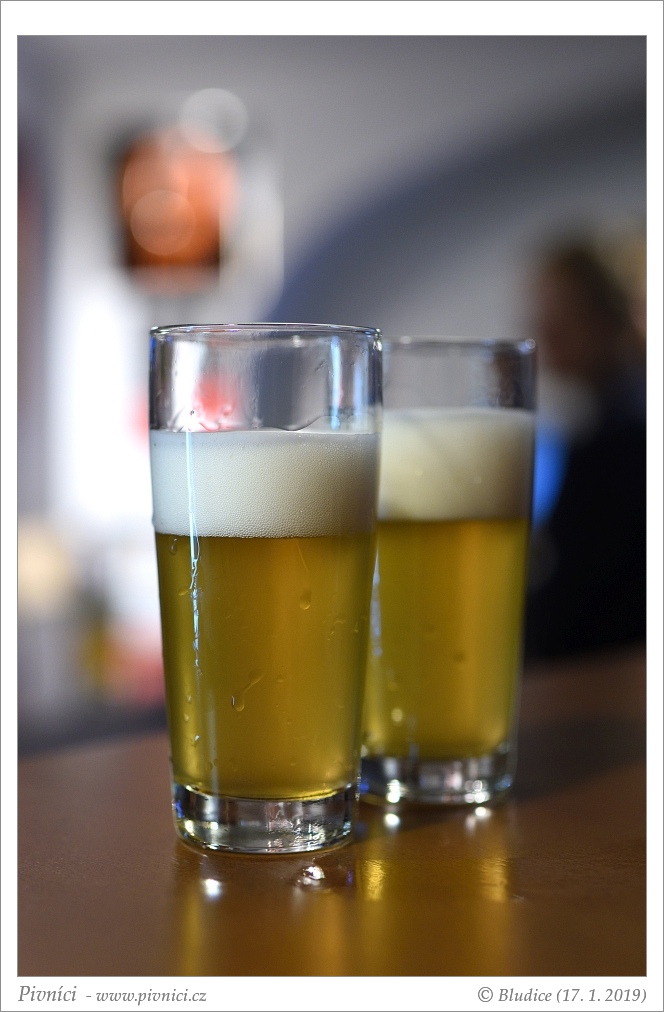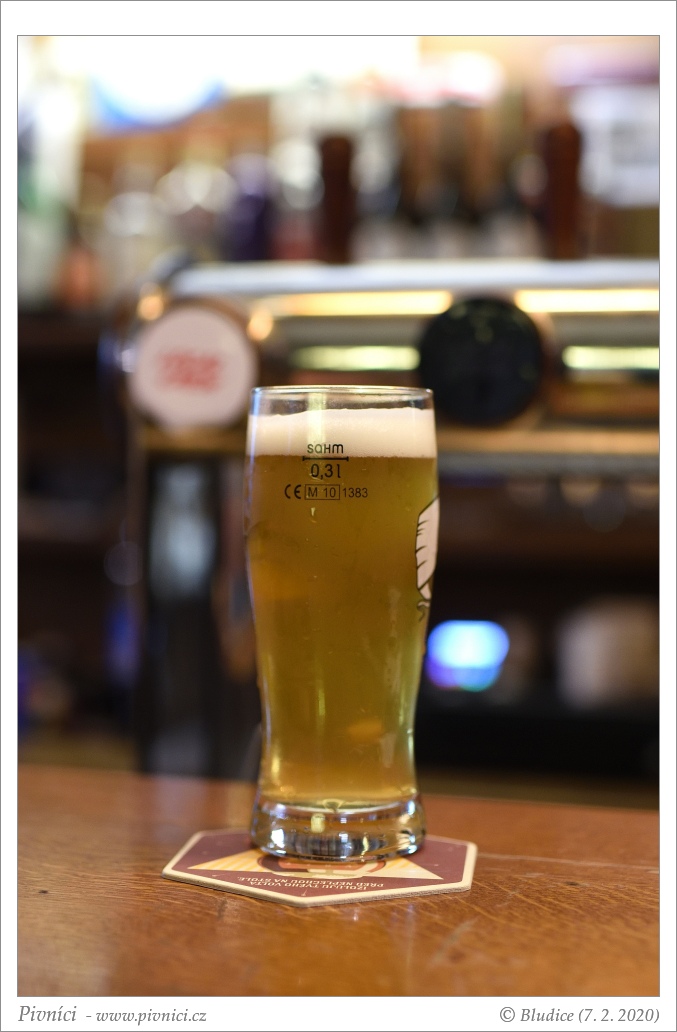 Zlatá barva, lehce zakalené. Nižší světlá pěna, dobře drží.Vůně (3,5 - velmi dobré):