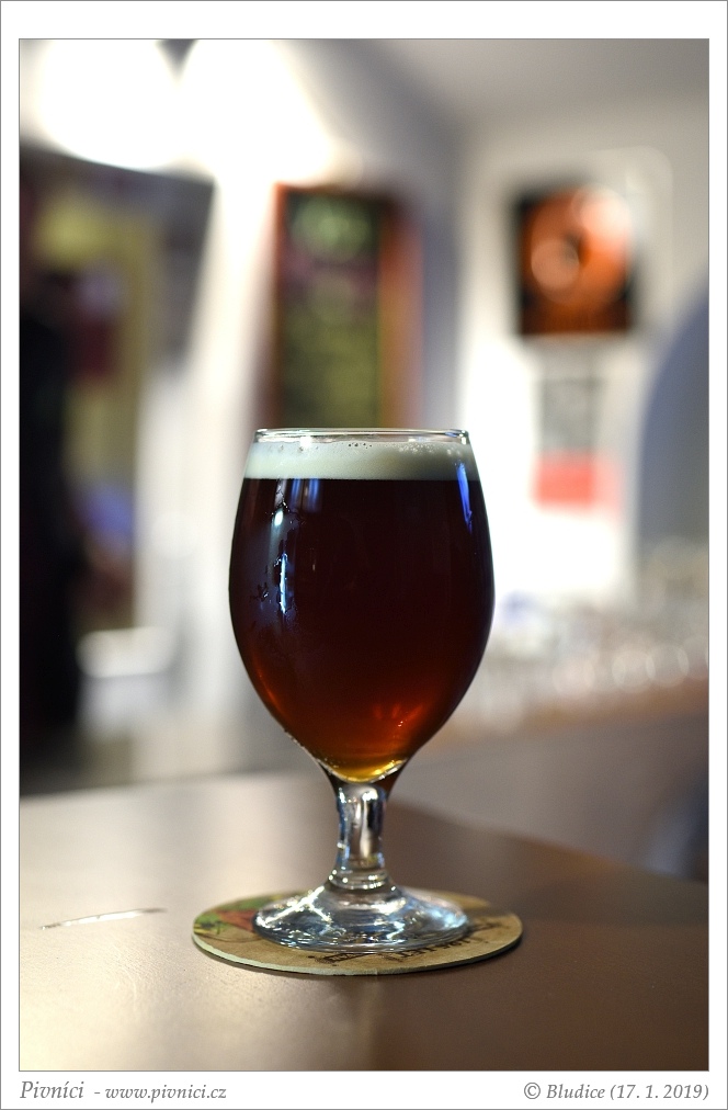 Tmavě měděná barva, lehce zakalené. Slušná světlá pěna s okrovým nádechem, dobře drží.Vůně (3 - dobré):