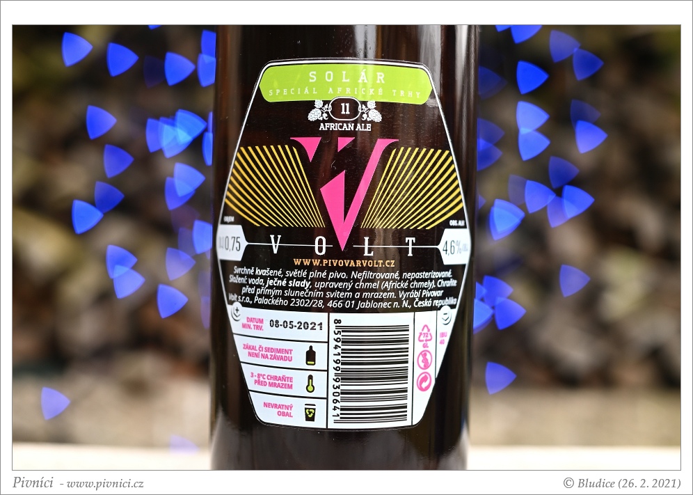 Trochu zoxidované, ale jinak celkem pitelné pivo.Minimální trvanlivost: 8. května 2021