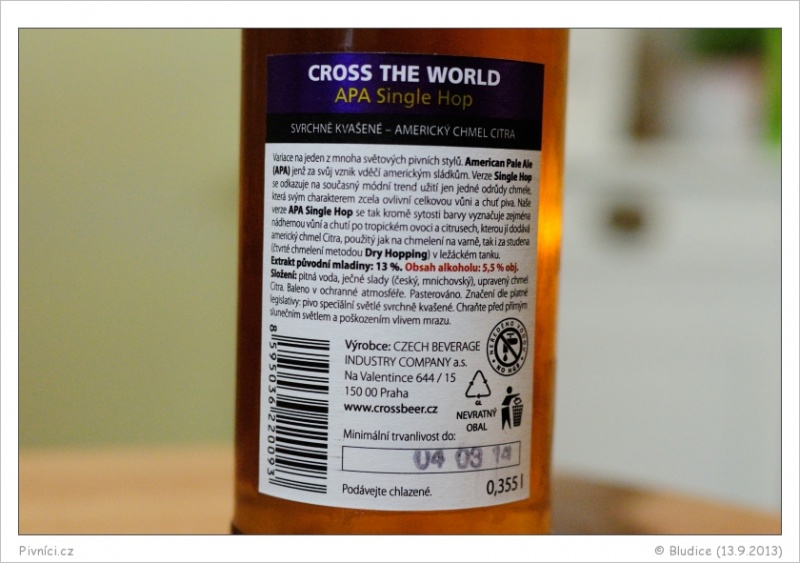Celkem pitelné pivo, ale z Citry se rozhodně dá uvařit pivo chutnější.Minimální trvanlivost: 4.3.2014