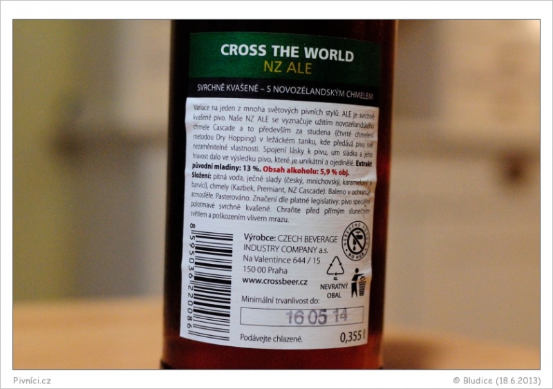 Velmi dobře pitelný ovocný ejlik. Trošku připomíná některé Bittery.Minimální trvanlivost: 16.5.2014