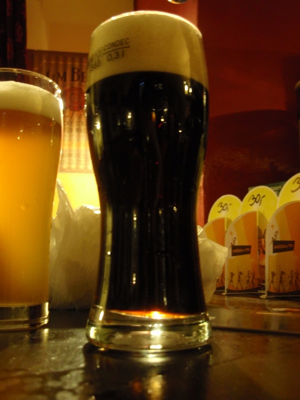 Barva velmi tmavá, téměř černá. Pěkná hustá stabilní pěna béžové barvy.Vůně (3 - dobré):